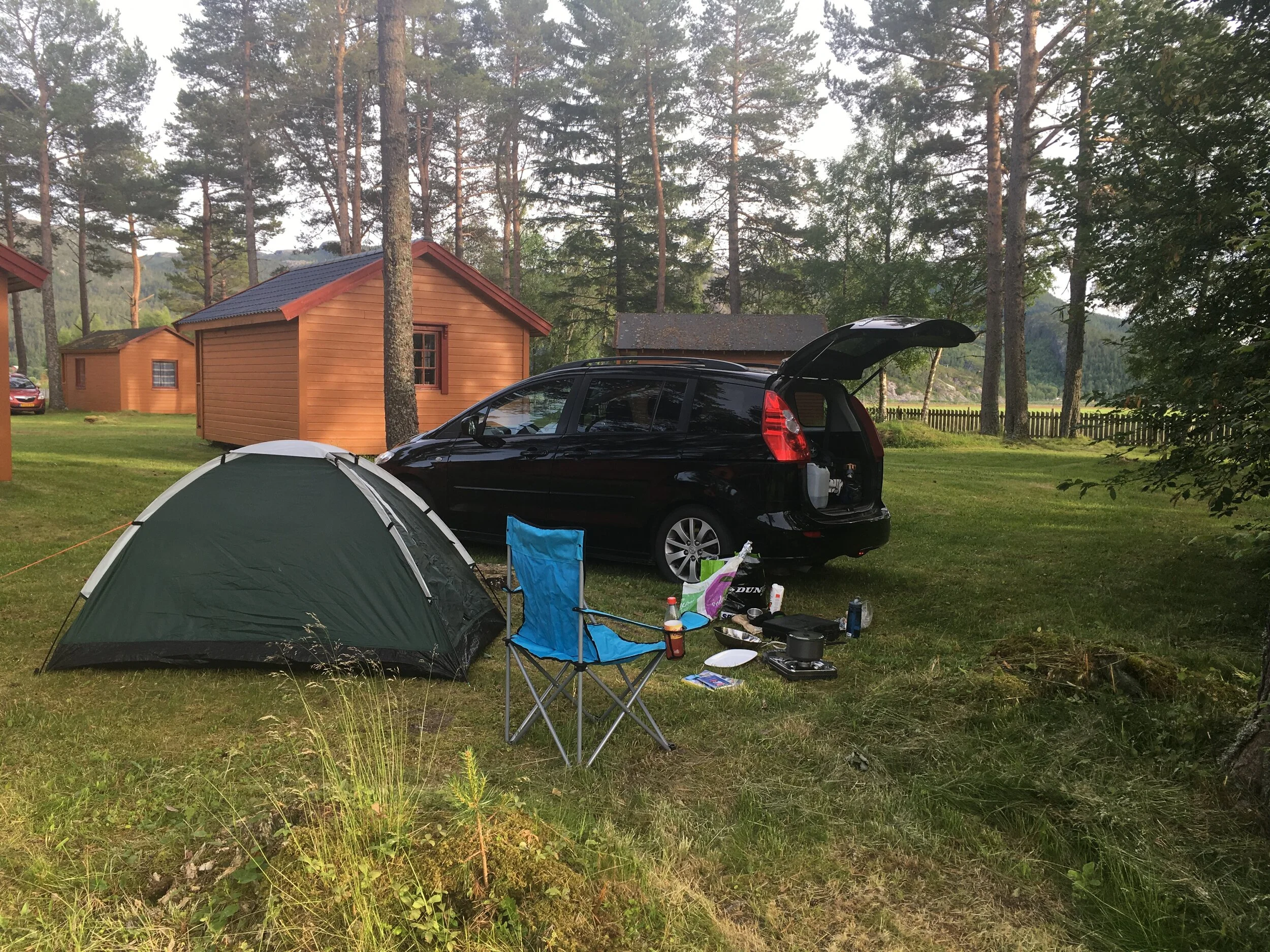 Gutten i bua skrev meg opp med ett telt og bil, og jeg slapp unna med 150 kroner. Slettes ikke ille, og en hundrelapp billigere enn det jeg har sett mange andre tar for samme konstellasjon.