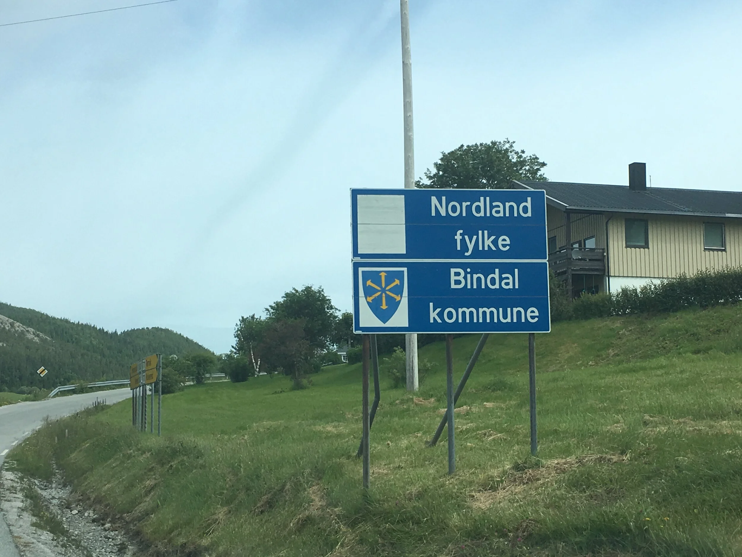 Da jeg nærmet meg grensa til Nordland forandret også landskapet seg. Fjellene på innsiden ble høyere og brattere, mens jeg skimtet flere øyer og tilslutt åpnet hav på min venstre side. Et obligatorisk stopp ble det også på fylkesgrensa i Bindal. Like etter fylkesgrensa åpenbarte det seg også ei flå indre Hedmark verdig. Det er altså ikke bare på Flisa det er lange flåer i dette landet.