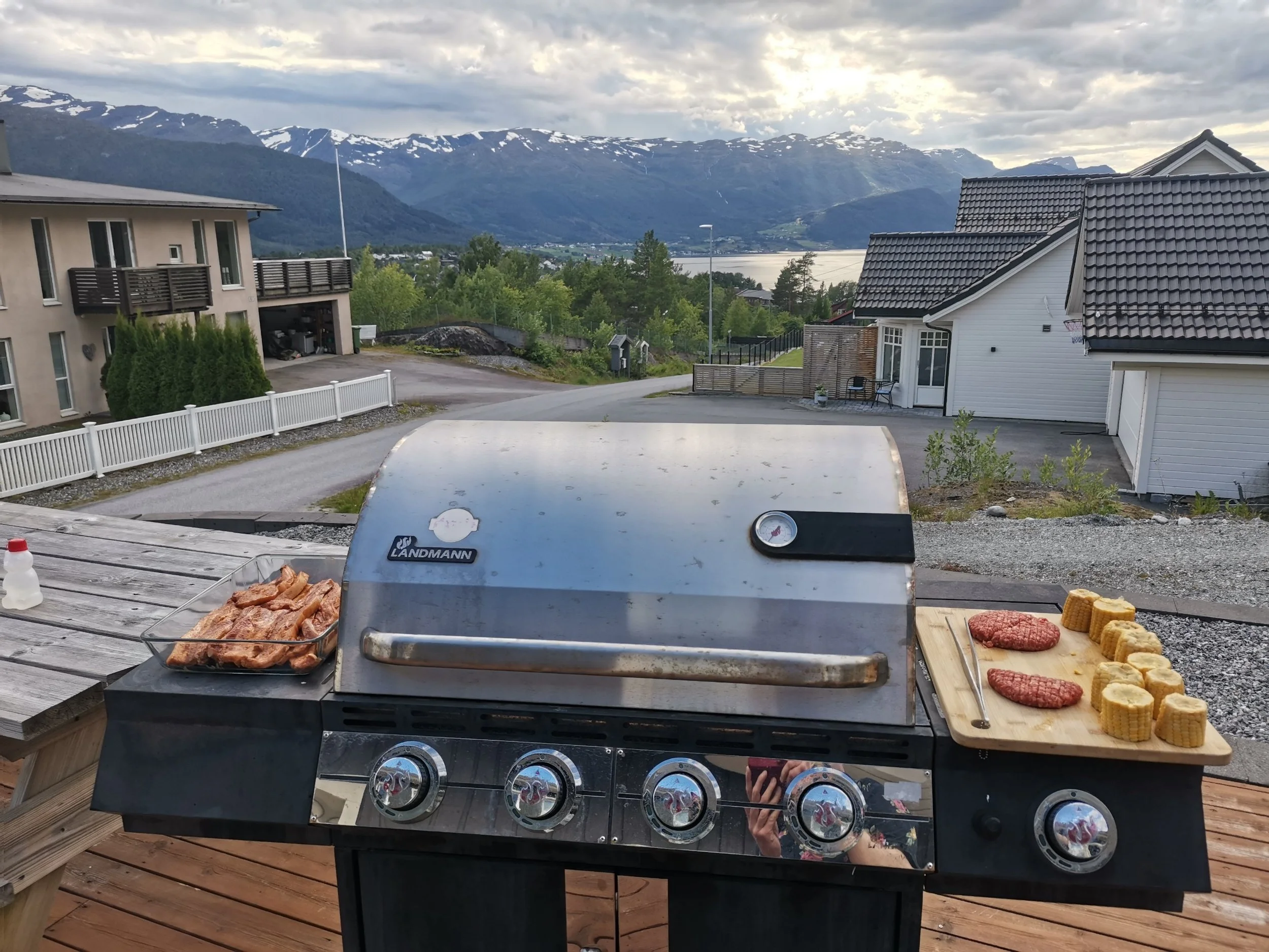 Etter at 4-åringen var i seng for kvelden, så preppet vi for grilling i kveldssola - og nøt resten av kvelden med god mat, godt drikke og veldig koselig selskap.