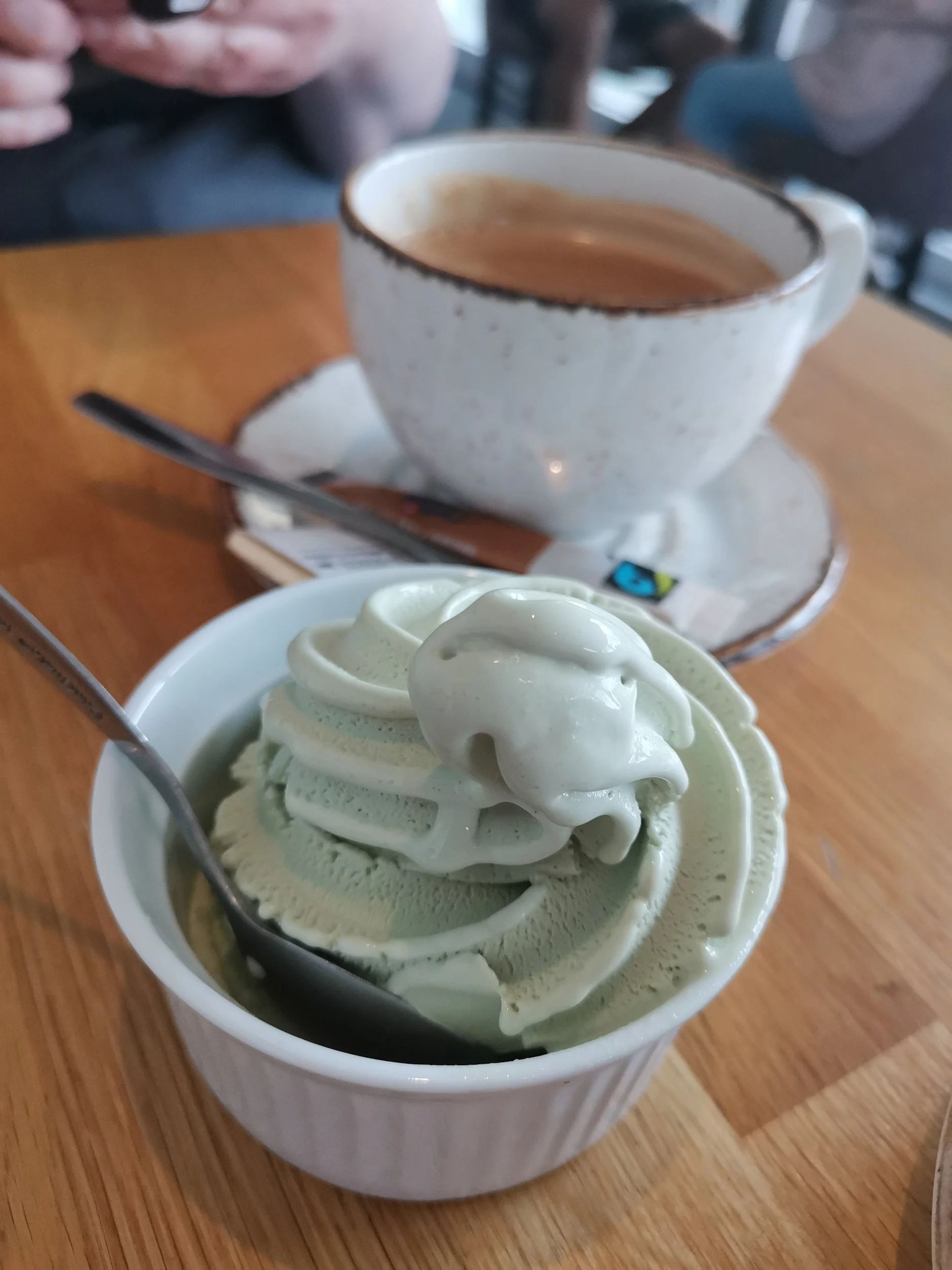 For vår del var planen bare å på et eller annet tidspunkt snirkle oss over fjellet igjen tilbake til Gudbrandsdalen - men ikke før alle fire voksne hadde inntatt en god lunsj på Lauget. For min del gikk jeg for en deilig Focaccia med spekeskinke, og en Meksikansk Mokka - som var en ren gambling, men som var noe av det beste jeg har smakt av kaffe som ikke er straight, svart.